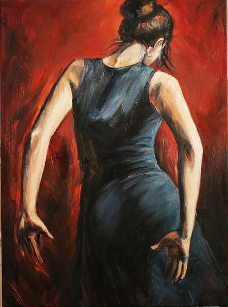 Reproduction De Peintures A L Huile Sur Toile Cadeau Personnalise Fait A La Main Robe Noire Et Bleue De Danseurs De Flamenco Espagnols Haute Qualite Aliexpress