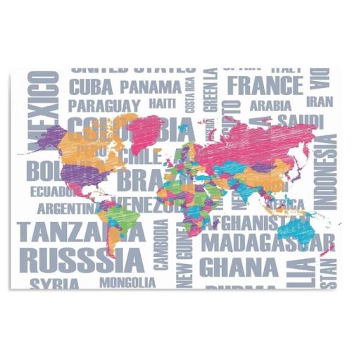 Image Tableau Sur Toile Art Moderne Canevas Carte Du Monde Coloree Noms Pays 100x70 Achat Prix Fnac