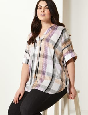 Curve Nbsp Tunique Longue A Manches Courtes Et Carreaux Chemises Et Chemisiers Marks And Spencer Fr