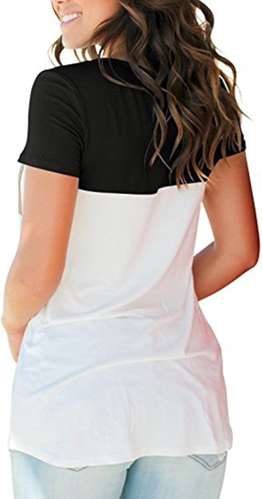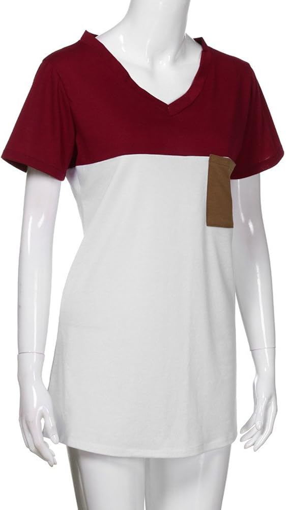 Chemisier Chic Femme Poche Col En V Manche Courte Ete Casual Mode Chemise Classique Haut Tops Blouse Epissage Des Couleurs Tee Shirt Siswong Tunique Longue Femme Grande Taille Bazis Az
