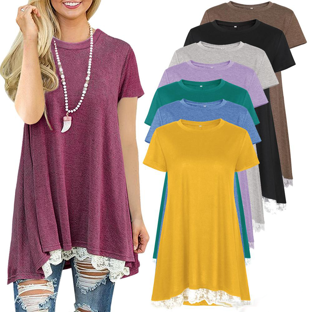 Ete Femme Tops Mi Longue Casual Lache Tunique Dentelle Epissure Blouses Bateau Col Bandage Manches Courtes Chemisiers T Shirts Rouge Rouge Achat Vente T Shirt Soldes Sur Cdiscount Des Le Janvier