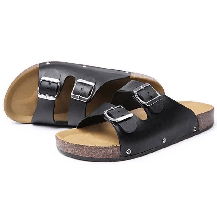 Hommes Summer Open Toe Casual Cuir Plage Chic Sandales Plates Chaussons Chaussures Noir Achat Vente Chausson Pantoufle Cdiscount