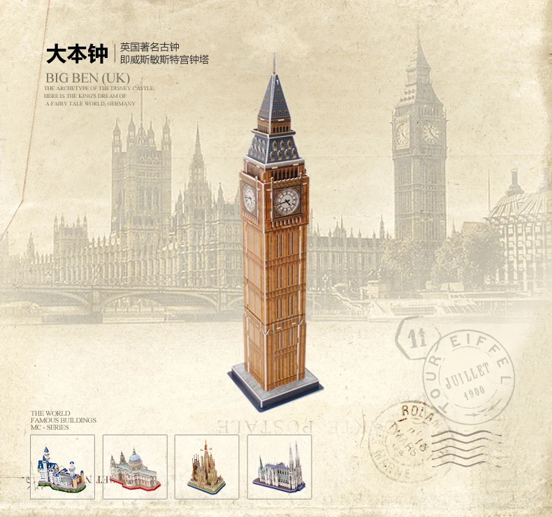 Puzzle Bricolage En Papier 3d De Taille Moyenne Big Ben A Londres Modele C094h C094t Pour Cadeau Pour Enfants Aliexpress