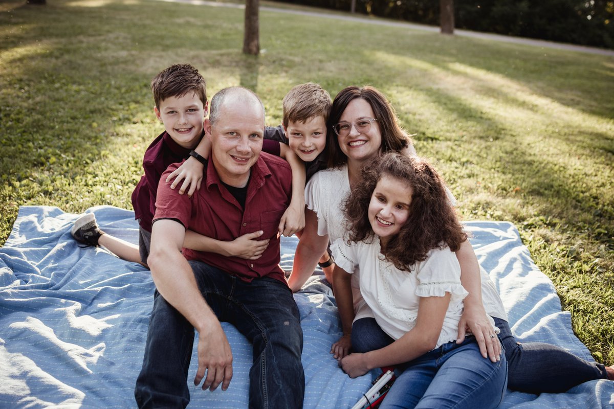 Girl And Parents Sitting In Garden With Dog Isf Corina Marie Howell Westend61