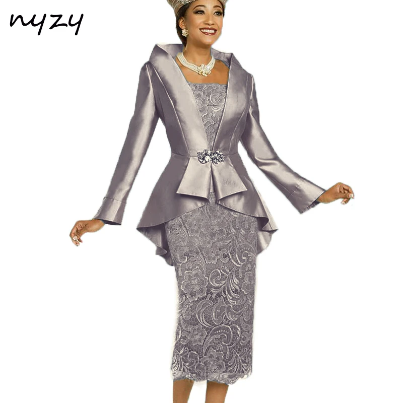 Nyzy Robe Pour Mere De La Mariee Tenues Pour Mere De La Mariee Deux Pieces Avec Veste Grise M23c 19 Aliexpress