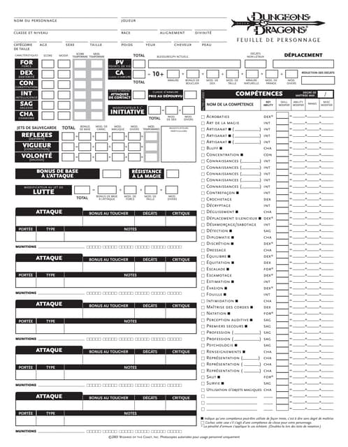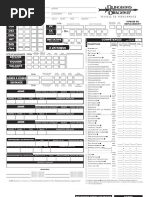 Fiche Personnage Donjon Et Dragon Francais