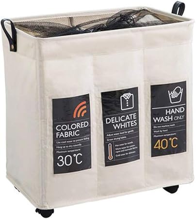 Doubleblack Panier A Linge Sale 3 Compartiment Bac Tri Corbeille Triple Pliable Chariot Avec Roulette Amazon Fr Cuisine Maison