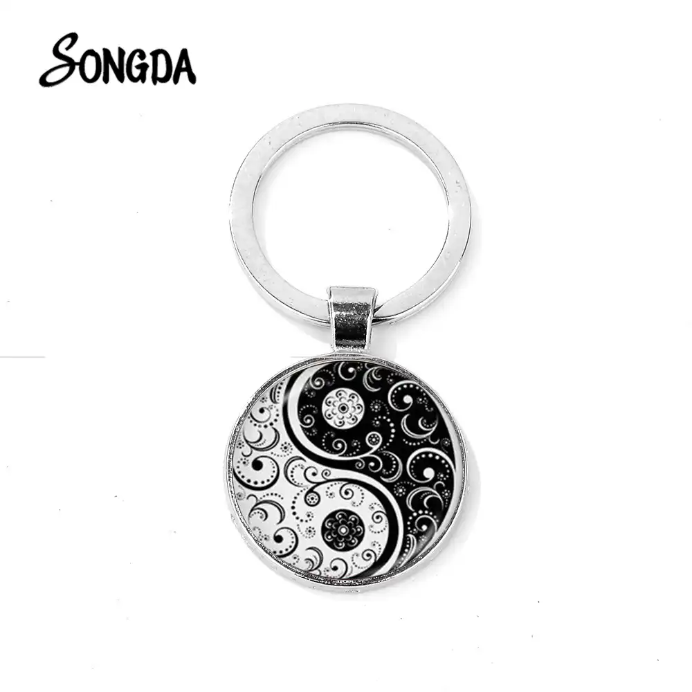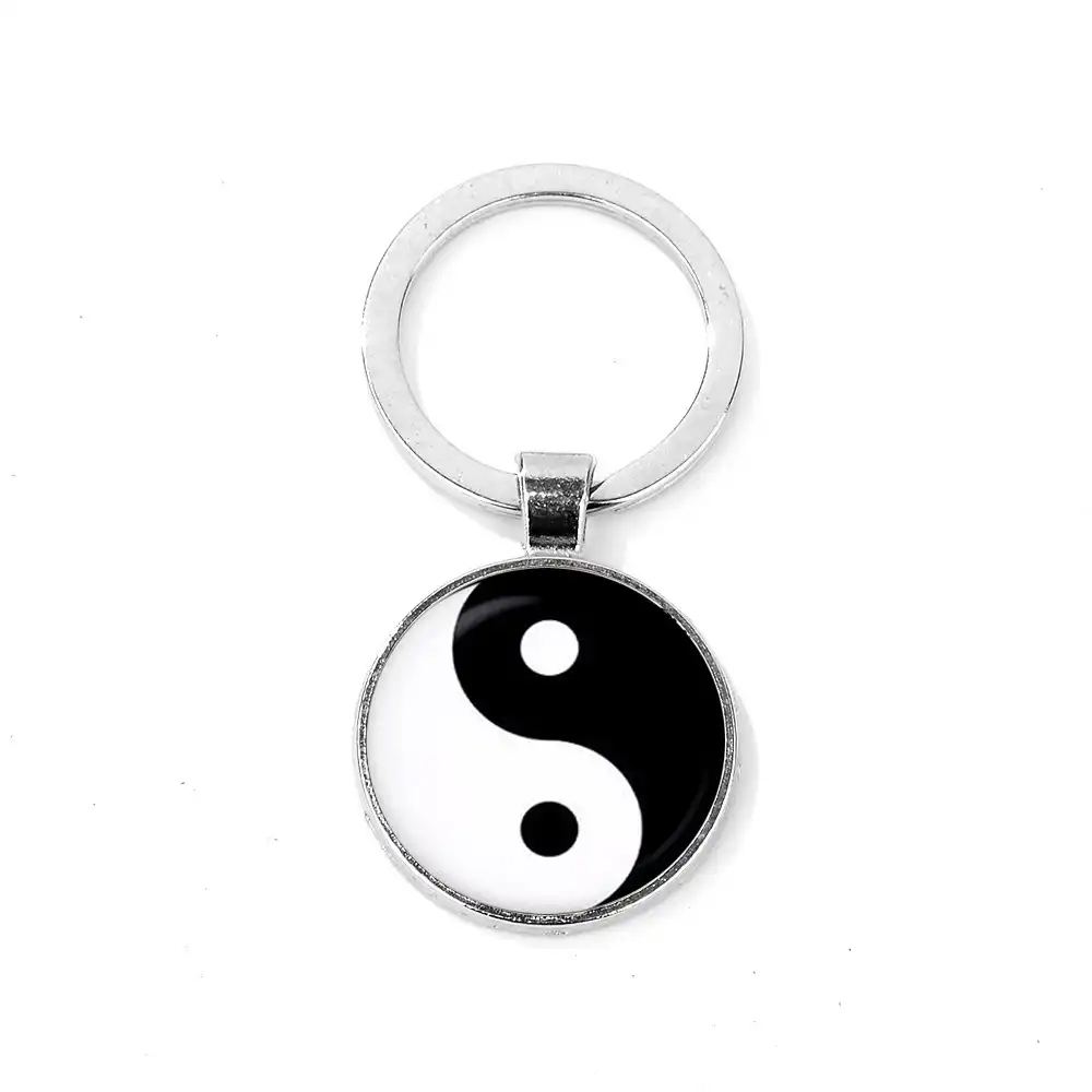 Taoisme Chinois Signe Yin Yang Porte Cles Huit Diagrammes Empreinte De Chat Yin Yang Motif Papillon Dome De Verre Porte Cles Chaines Aliexpress