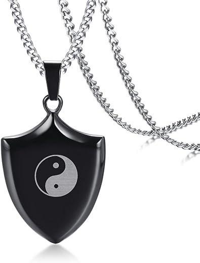 Aruie Bijoux Collier Pendentif Forme Bouclier Signe Yin Yang Croix Crucifix Lune Etoile Plaque Noir Chaine Acier Inoxydable Cool Biker Personnalite Cadeau Homme 2 Amazon Fr Bijoux