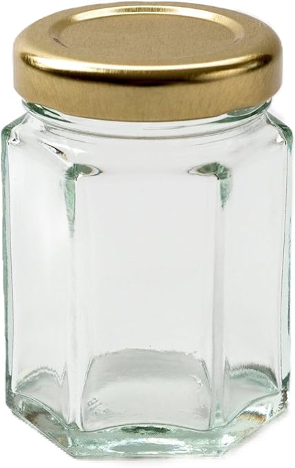 Nutley S Lot De 55 Ml Petit Pot A Confiture Hexagonaux En Verre Avec Couvercle A Vis Or Lot De 48 Amazon Fr Jardin