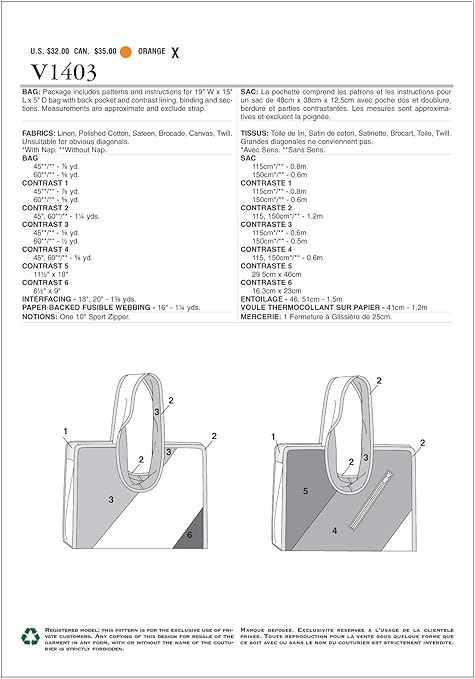 Amazon Com Vogue Patterns V1403 Bags Sewing Template One Size Only Arts Crafts Sewing