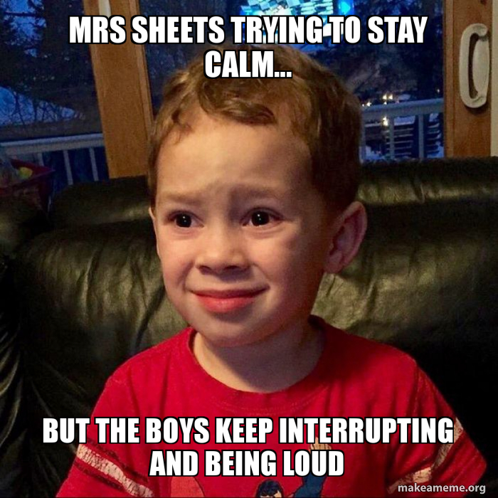 Mrs Sheets Trying To Stay Calm But The Boys Keep Interrupting And Being Loud Make A Meme