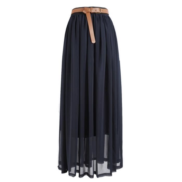 Mousseline De Soie Jupe Longue De Ceinture Elas Marine Achat Vente Jupe Soldes Sur Cdiscount Des Le Janvier Cdiscount