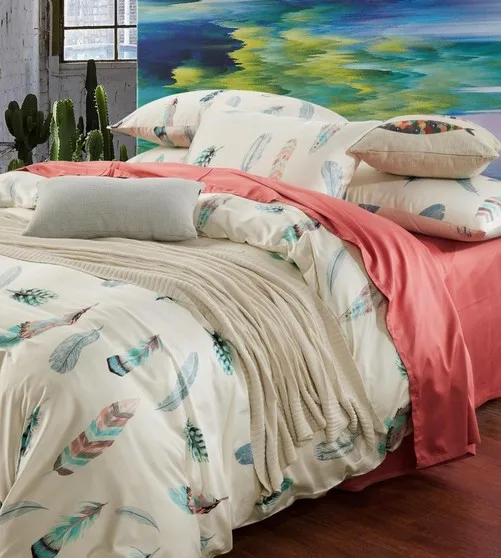 Colore Plume Ensemble De Literie King Size Reine Pleine Double Rose Draps De Lit Couette Housse De Couette Couvre Lit Linge Drap De Coton Plume Aliexpress