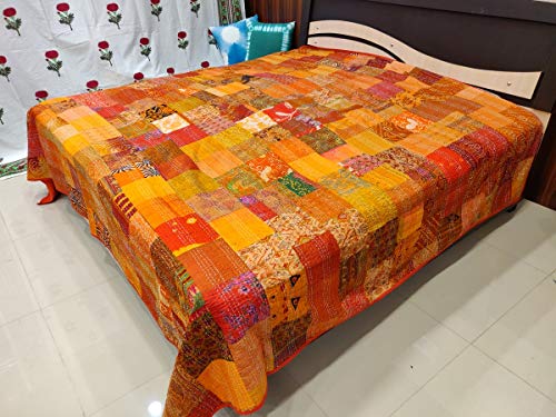 Dessus De Lit Indien Kantha Artisanal Colore Imprimer Sur Tissu Motif Indien Tissu Indien
