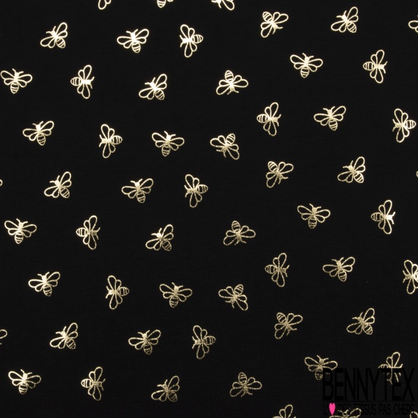 Jersey Coton Elastahanne Imprime Abeille Doree Fond Noir Bennytex Vente De Tissus Pas Cher Au Metre