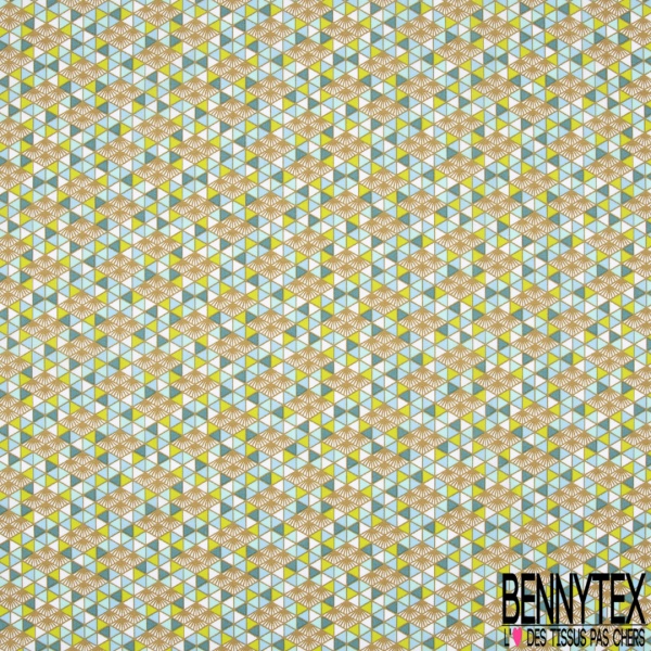 Toile Lorraine 100 Coton Impression Motif Triangle Dore Vert Et Bleu Bennytex Vente De Tissus Pas Cher Au Metre