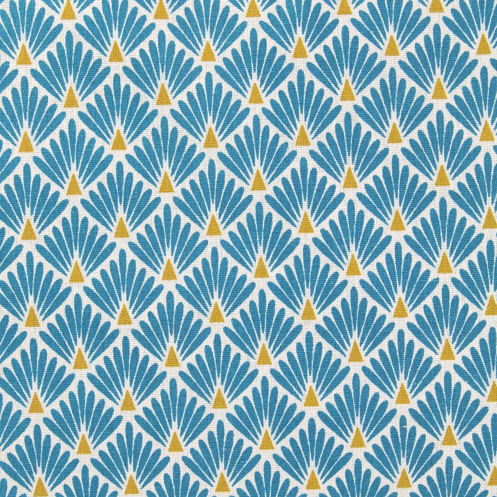Tissu D Ameublement Tissu Coton Cretonne Eventails Dores Turquoise X 10cm Tissu D Ameublement Tissu Coton Tissu