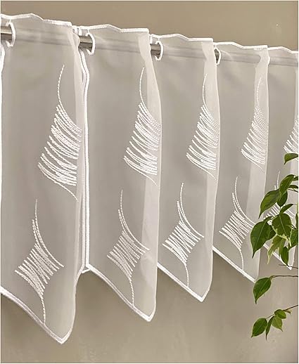 Heimtexland Rideau Brise Bise Sur Mesure Voilage De Bistro Brode Au Metre Largeur Sur Demande Par Increments De 32 Cm Hauteur 45 Cm Rideau Blanc Typ677 Amazon Fr Cuisine Maison