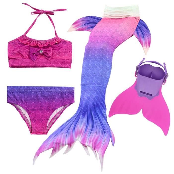 Pour Fille Deguisement Maillot De Bain Queue De Sirene 4 Pieces Sans Monopalme Avec Bikini Maillots De Bain Fille