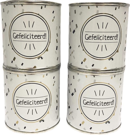4 Snoepblikjes Gefeliciteerd Verjaardag Man Verjaardag Vrouw Thuisblijvertjes Bol Com