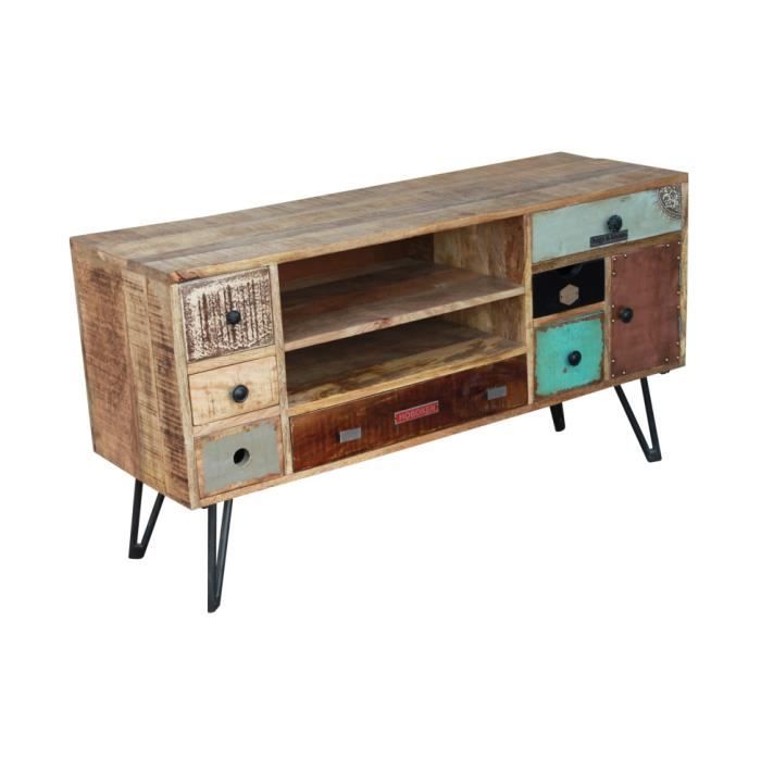 Meuble Tv Vintage Multicolore 4 Tiroirs Achat Vente Meuble Tv Pas Cher Couleur Et Design Fr