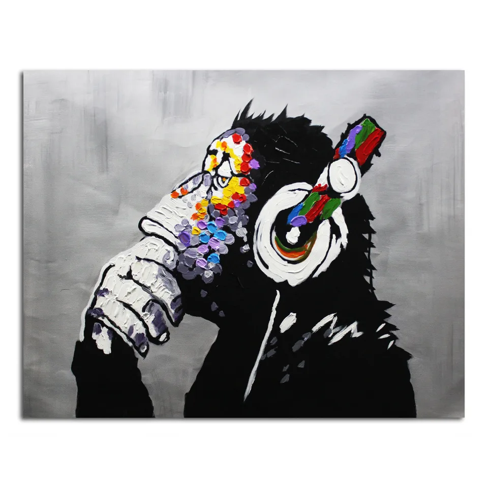 Iarts Pop Art Animaux Peinture Peint A La Main Toile Art Pensee Gorilla Et Sika Cerf Mignon Pop Mur Art Decor Sans Cadre Colore Aliexpress