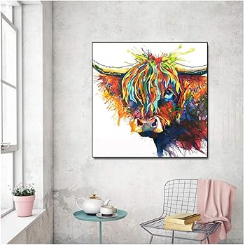 Yangmengdan Impression Sur Toile Animal Colore Vache Pop Art Portrait Affiches Peinture A L Huile Decoration Murale Peinture Sur Toile Impressions D Art Pour Salon 50x50 Cm Sans Cadre Amazon Fr Cuisine Maison