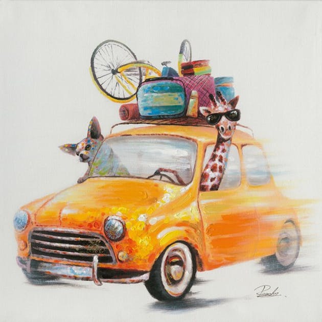 Tableau Animaux En Voiture Pop Art 70x70 Peinture Acrylique Tableaux Toiles Pier Import