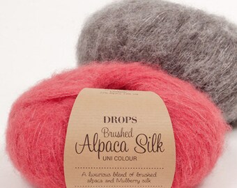 Besides being super soft, DROPS Brushed Alpaca Silk has a sophisticated shade card ranging from soft beige and gray hues, to gorgeous reds and purples This yarn feather light and surprisingly warm features make it suitable for both small and large. Besides being super soft, DROPS Brushed Alpaca Silk has a sophisticated shade card ranging from soft beige and gray hues, to gorgeous reds and purples. DROPS BabyAlpaca Silk is spun from 3 strands in a combination of the best of two wonderful fibers, being a mix of 70% baby alpaca (for softness) and 30% mulberry silk (for strength and shine) The yarn fibers are untreated, which means they are only washed and not exposed to any chemical treatment prior to the dyeing.