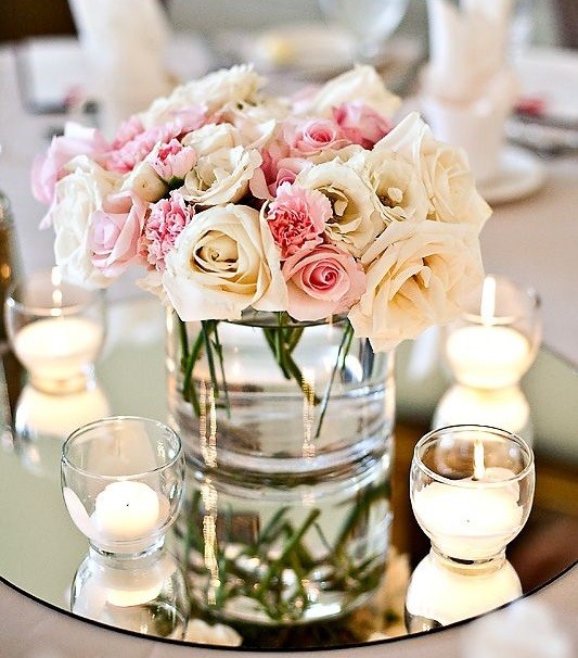 Conseil N 56 Centre De Table Fleurs Et Miroir Rond Decoration Forum Mariages Net