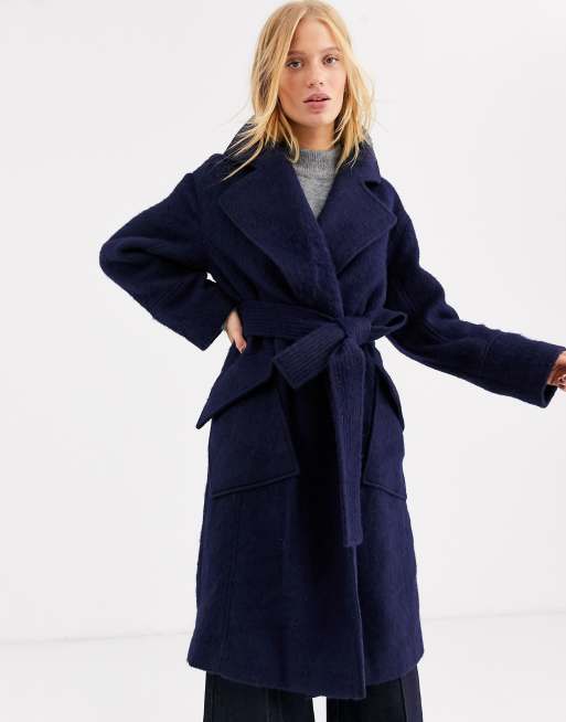 Manteau En Cachemire De Laine Avec Ceinture A Nouer En Marine Sur La Boutique En Ligne De Windsor