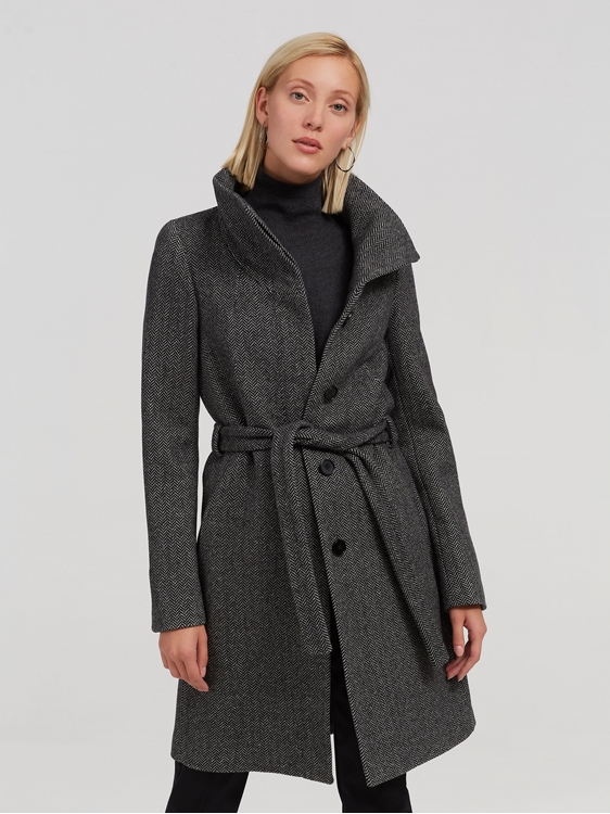 Manteau En Melange De Laine Pour Femme Avec Ceinture
