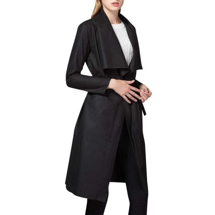 Noir Manteau Laine Femme Mi Longue Col Revers Asymetrique Manche Longue Avec Ceinture Nouveaute Amincissant Grande Taille Noir Achat Vente Manteau Caban Cdiscount