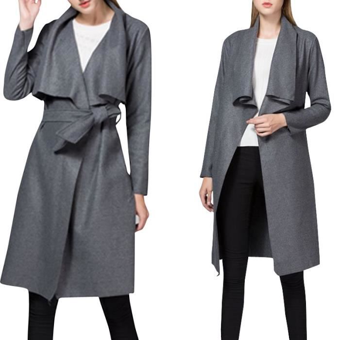 Gris Manteau Laine Femme Mi Longue Col Revers Asymetrique Manche Longue Avec Ceinture Nouveaute Amincissant Grande Taille Gris Achat Vente Manteau Caban Soldes Sur Cdiscount Des Le Janvier Cdiscount