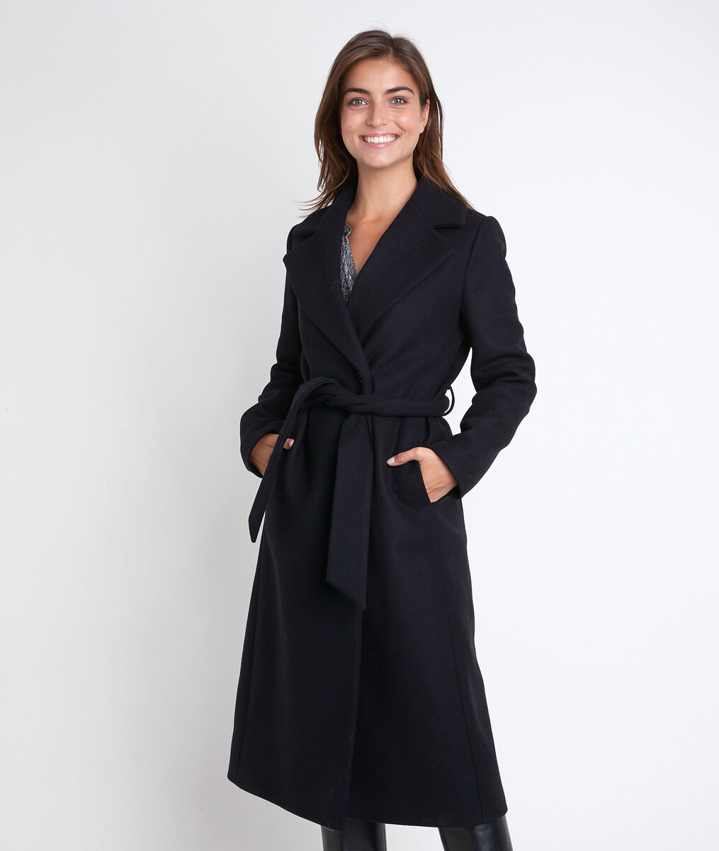 Manteau Mi Long En Drap De Laine Ceinture Noire Femme Ikks Mode Automne Hiver Manteau Parka