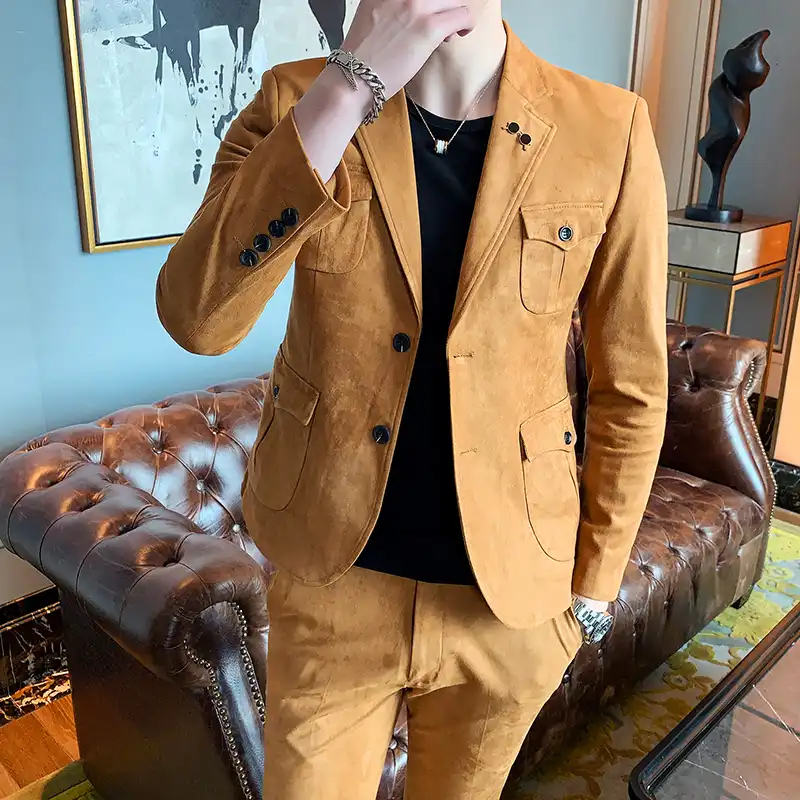 Spring Suede Men Suits 2 Pieces Slim Fit Business Dress Suits Blazer Pant Green Camel Wedding Suits For Men Costume Homme Suits Aliexpress