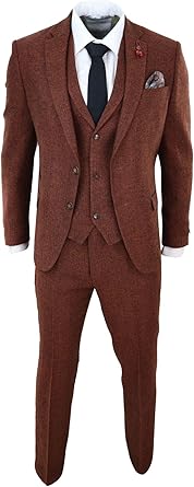 Costume Camel Homme 3 Pieces Tweed A Chevrons Laine Melangee Style Vintage Retro British Gentleman Amazon Fr Vetements Et Accessoires
