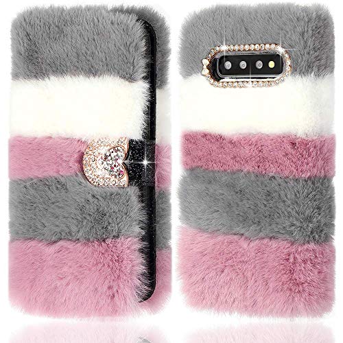 Llz Coquellz Coque For Samsung Galaxy S9 Case Super Soft Faux Fur Leather Wallet Cover Glitter Sparkle Diamante Buckle Tpu Inner Shell Cute Furry Flip Phone Case For Samsung Galaxy S9 Collage Grey
