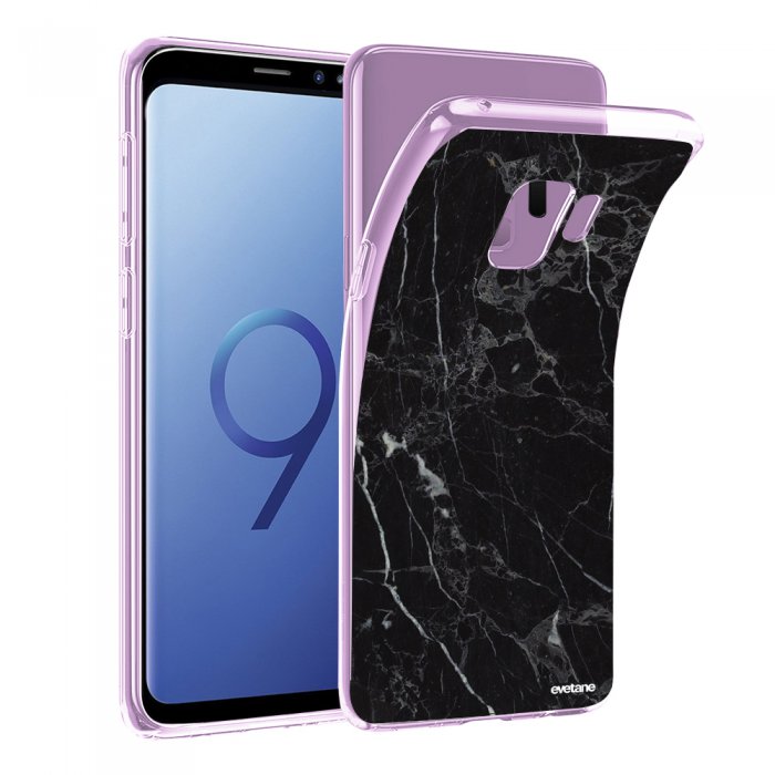 Coque Samsung Galaxy S9 Plus Souple Transparente Marbre Noir Motif Ecriture Tendance Evetane Coquediscount