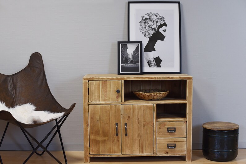 Industrial Style Aged Solid Wood Buffet 100 X 39 X H 80 Cm Etsy