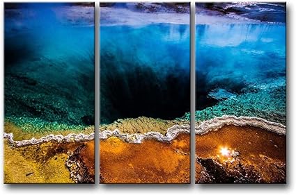 3 Pieces Mur Art Peinture Parc National De Yellowstone Bleu D Eau Decoration Photos De La Photo Imprime Sur Toile Paysage D Huile Pour La Maison Imprime Moderne Decoration Pour Les Articles Amazon Fr Cuisine