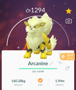 Stardust Pokemon Go Arcanine 2636cp L35 Male Pokemongo 100ivmaxcp Rare Screenshots Please Snarl Wild Charge 35 138