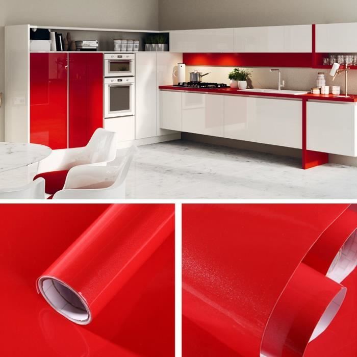 Mur Rouge Brillant Chambre Rouleau Adhesif Placard Cuisine Pose Facile Et Rapide Porte Salon Ideal Pour Meuble Papier Peint Autocollant 1 M X 61 5 Cm Salle De Bain Decoration Stickers Meubles Autocollants