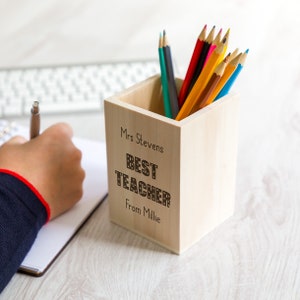 Un Cadeau Utile Qui Fera Tres Plaisir A Lenseignant De Votre Enfant Notre Pot A Crayon Personnalise Avec Le Nom Du Maitre De La Maitresse Au Rect Etsy Crayon