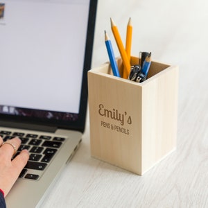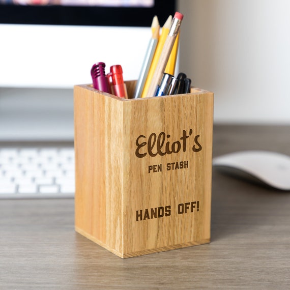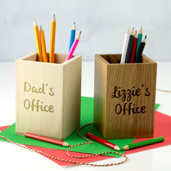 Office Pen Holder Personalised Wooden Pen Pot Corporate Etsy