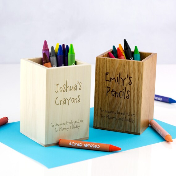Porte Crayon Crayon En Bois Personnalises Cadeaux Pour Les Etsy