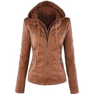 Perfecto Veste En Simili Cuir Mode Decontracte Femme Jacket Marron Manteaux Hauts