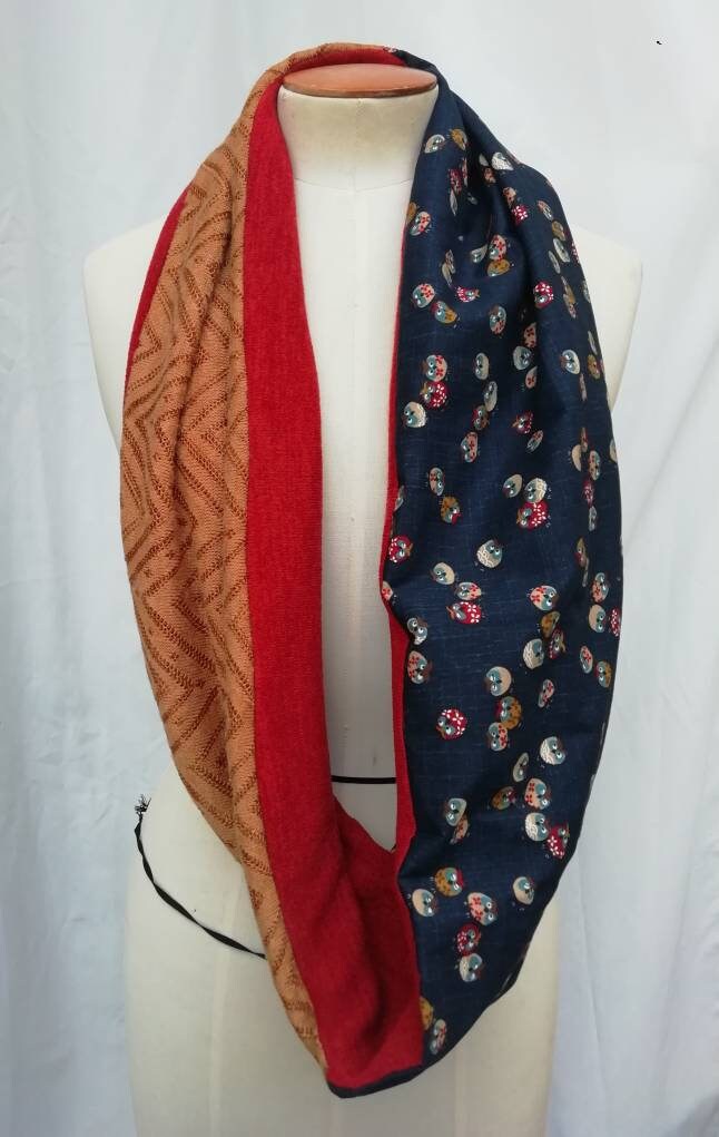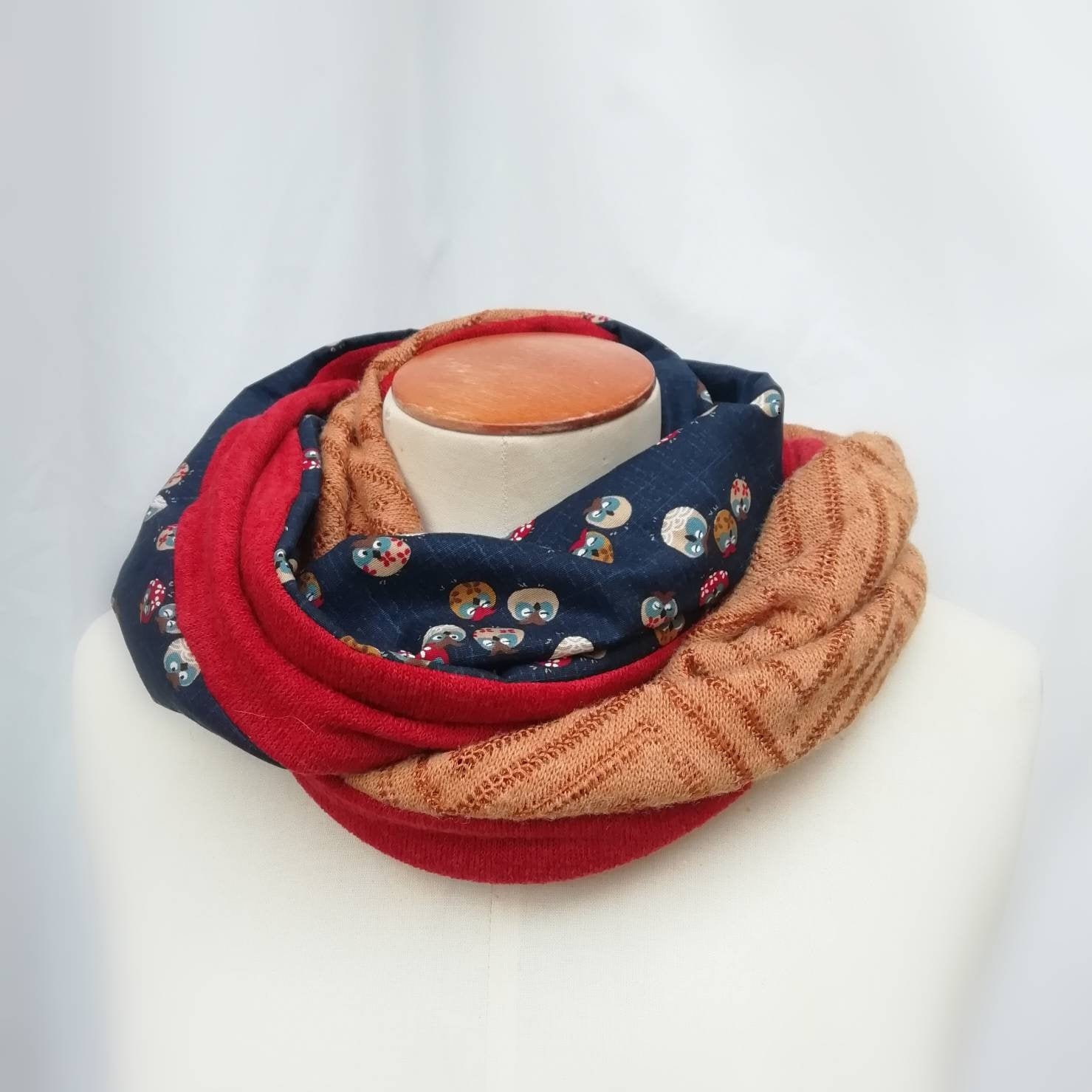 Snood Women S Wool Scarf Knit Orange Rust And Japanese Fabric