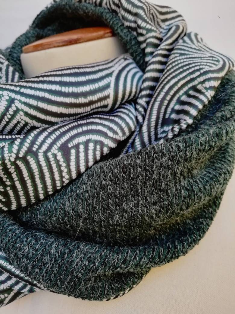 Snood Dark Green Woman With Japanese Geometric Pattern Fabric